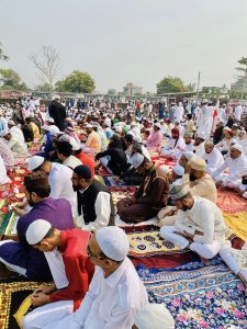 विराटनगर,२९ चैत । मुस्लिम धर्मावलम्बीको दोस्रो महान् पर्व इदुल फित्र बिहीबार धुमधामका साथ मनाइँदैछ। यसैक्रममा विराटनगरमा रहेका मुस्लिम धर्मावलम्बीहरू भेला भई इद मनाएका छन्। उनीहरूले नमाजपछि एकआपसमा अंकमाल गर्दै शुभकामना आदान प्रदान गरे।