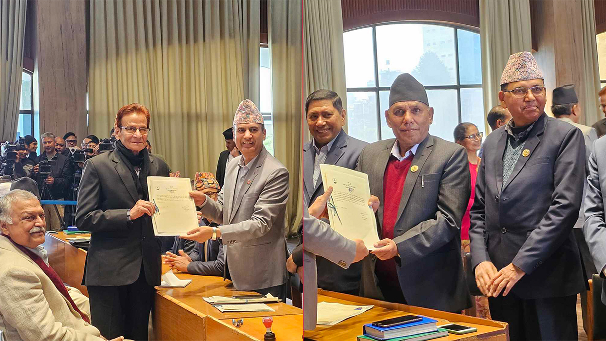 काठमान्डौं,२९ फाल्गुन ।राष्ट्रिय सभाका नवनिर्वाचित अध्यक्ष नारायण दाहालले मंगलबार साँझ शपथ लिएका छन्। राष्ट्रपति भवन शीतलनिवासमा आयोजित समारोहमा राष्ट्रपति रामचन्द्र पौडेलले दाहाललाई शपथ गराएका हुन्। मंगलबार बिहान राष्ट्रिय सभामा भएको अध्यक्षको मतदानमा दाहालको पक्षमा ३९ र विपक्षमा १७ मत परेको ...
